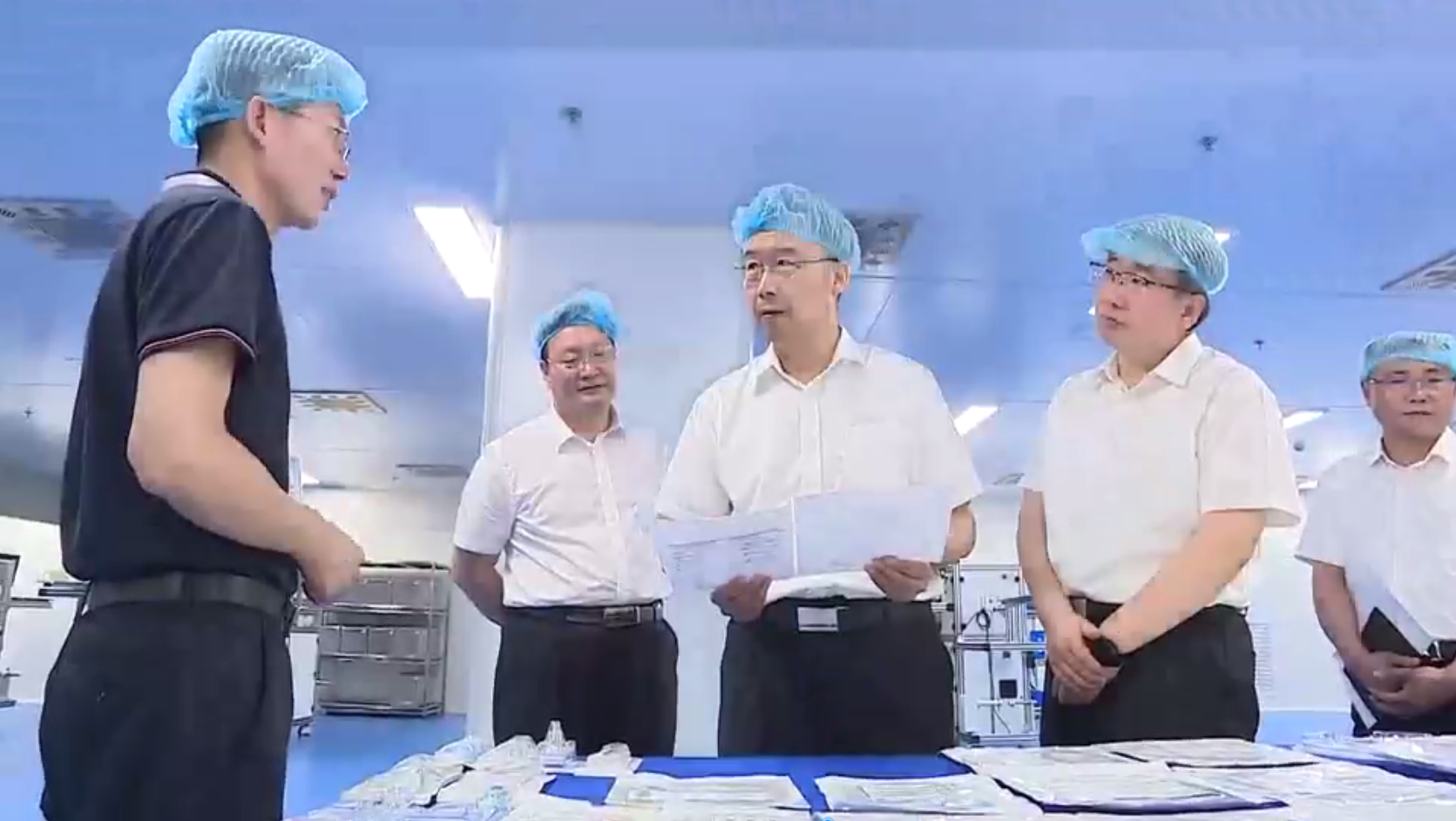 集團董事長陳志剛對王市長一行蒞臨指導表示熱烈歡迎,向各級領(lǐng)導匯報了公司建設(shè)及生產(chǎn)運營情況。隨后,陳志剛董事長陪同王現(xiàn)坤市長一行深入萬級潔凈車間及智能化生產(chǎn)車間,實地觀摩全進口智能生產(chǎn)線的高效運轉(zhuǎn),近距離感受行業(yè)領(lǐng)先的潔凈生產(chǎn)環(huán)境與全流程質(zhì)量管控體系。