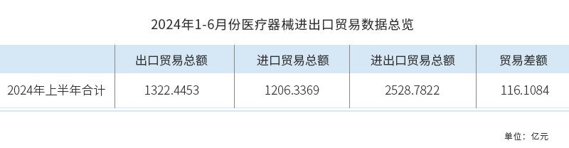 2024年1-6月份中國醫(yī)療器械進出口貿(mào)易總體情況