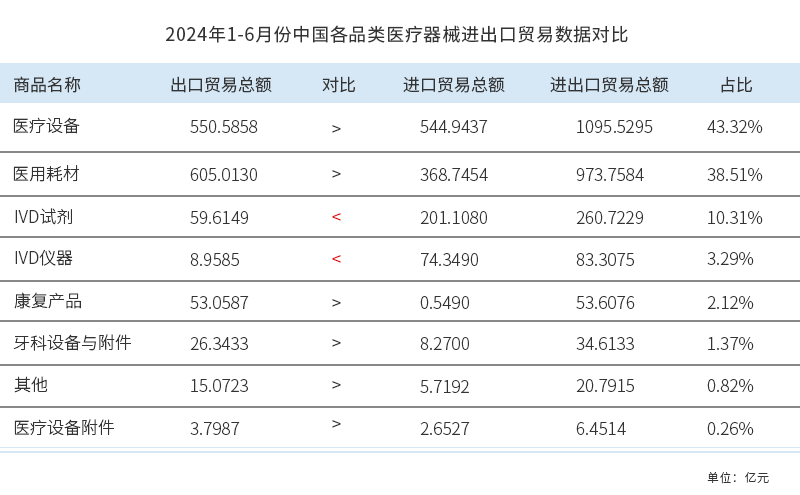 2024年1-6月份,中國醫(yī)療器械進出口貿(mào)易詳情——產(chǎn)品品類