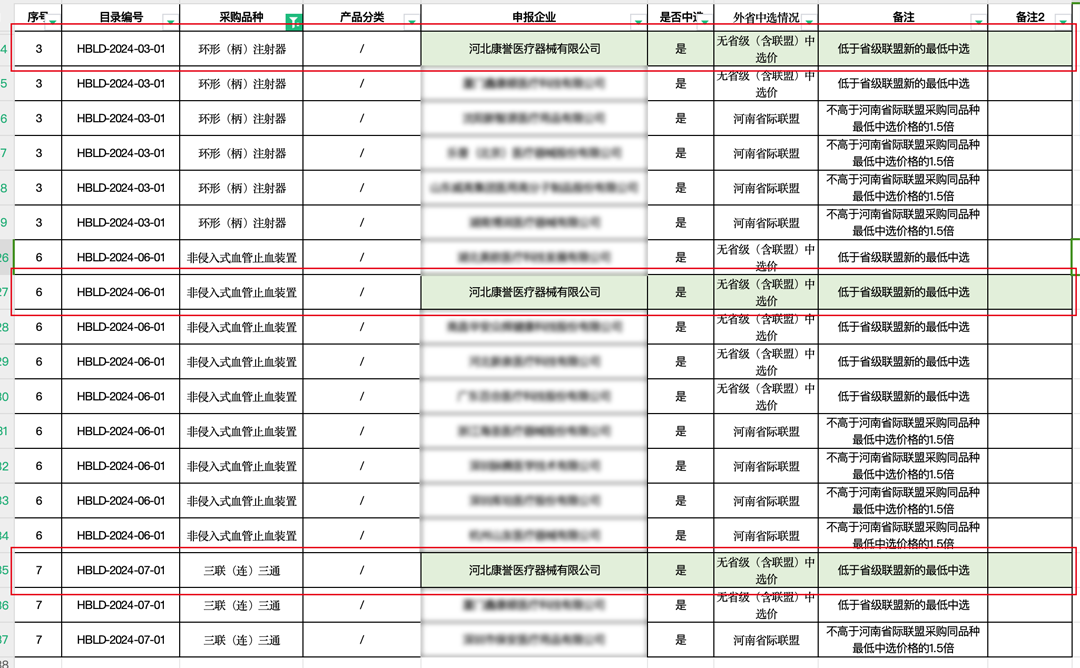 9月26日,河北省醫(yī)療保障局發(fā)布了《關(guān)于公布導(dǎo)尿包等7種醫(yī)用耗材帶量聯(lián)動中選結(jié)果的通知》,正式公示了此次帶量聯(lián)采的結(jié)果??底u醫(yī)療申報的一次性使用連通板、一次性使用環(huán)柄注射器、一次性使用橈動脈壓迫止血器,3個項目經(jīng)過激烈角逐,全部中選。河北省公立醫(yī)療機構(gòu)和軍隊醫(yī)療機構(gòu)作為采購主體,采購周期2年。