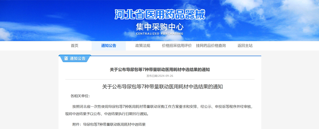 “河北省7種醫(yī)用耗材帶量聯(lián)動采購”中榮獲